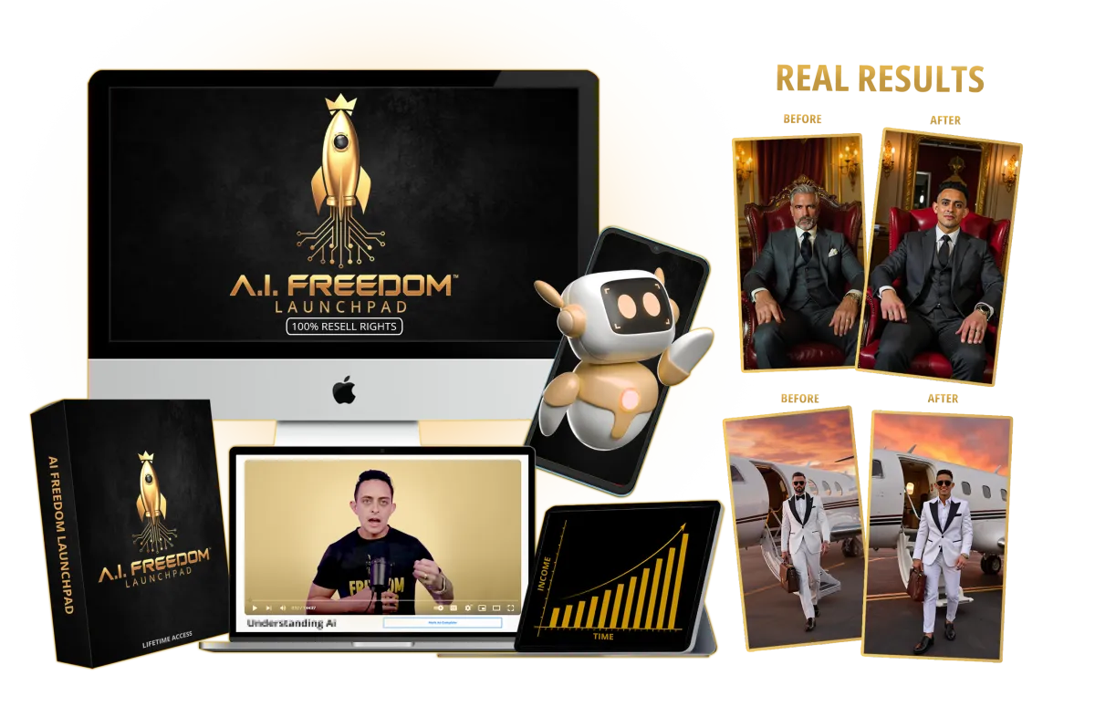 The A.I. Freedom Launchpad is built for everyday action takers who are DONE playing small and want to: